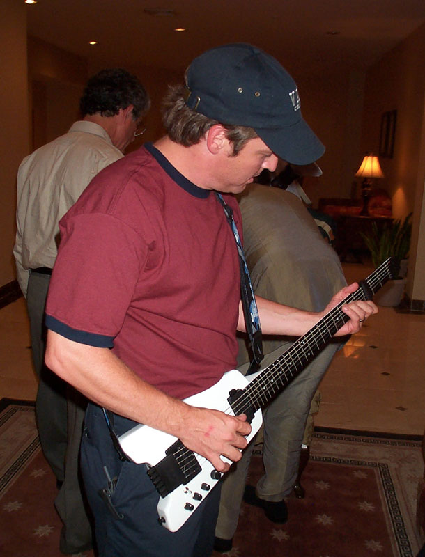Ned and Jim Rosenberg, head of Epiphone/Steinberger/MusicYo, presented the preview of the Synapse line. It was very well received (even some oohs from the hardcore Kramer guys), very detailed, and full of lots of info. These details I can now reveal: